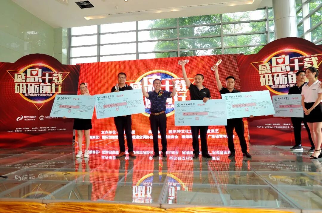 高额的奖金,震憾全场,这无不显示出董事长对邦的人的无尽关怀,尤其是邦的老员工的深厚感情,他知道,邦的的成功,离不开创始邦的人的辛勤付出,他知道,老一批邦的人用青春共同谱写了邦的宏伟的篇章!邦的永远感恩“邦的人”这一感恩举动,将会场气氛推向高潮!